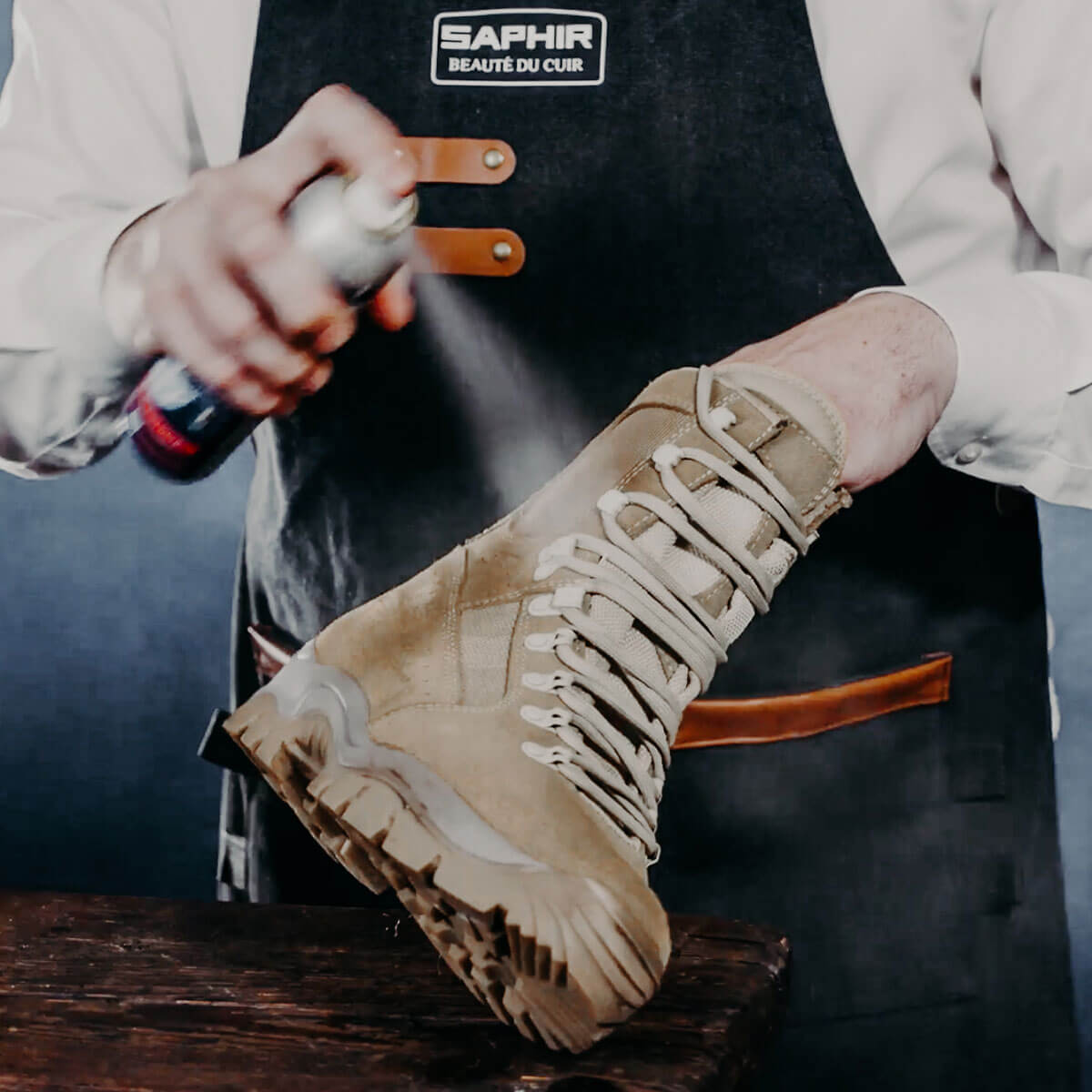 Protégez vos chaussures et bottes en daim avec le spray protecteur Saphir Nano Invulner.