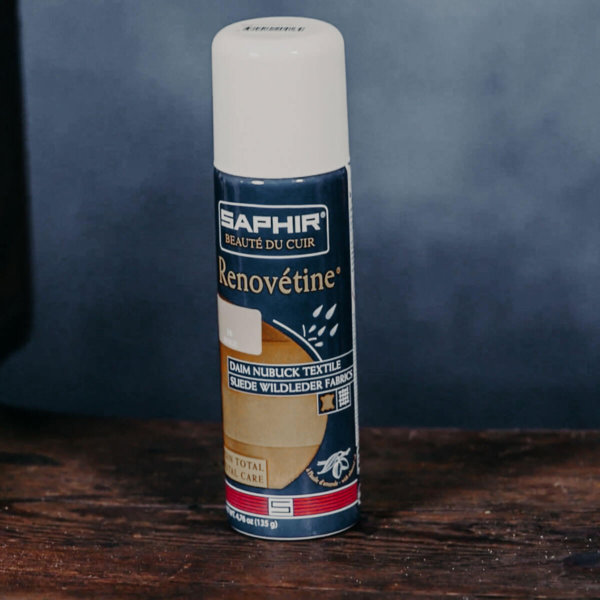 Avec le temps, vos bottes ou chaussures en daim peuvent perdre leur couleur d'origine. Si cela se produit, le spray rénovateur pour daim Saphir est la solution idéale. Le rénovateur Saphir agit comme un recolorant pour redonner vie à vos chaussures. Secouez bien l'aérosol et vaporisez-le uniformément sur les chaussures à une distance de 20-25 cm. Laissez sécher pendant 10 minutes.