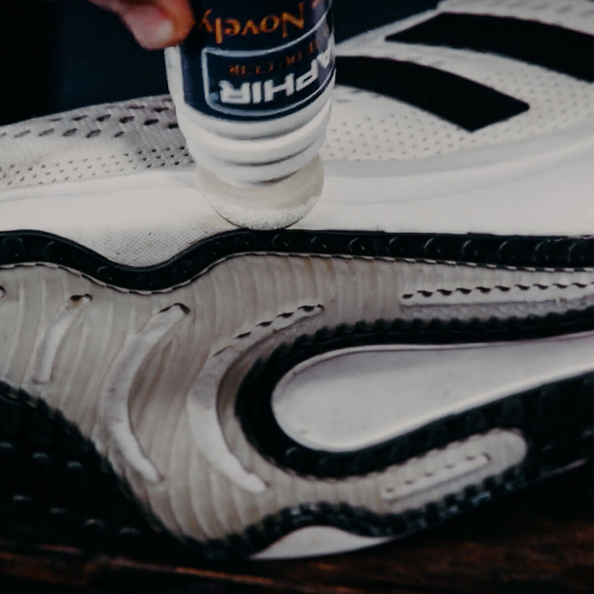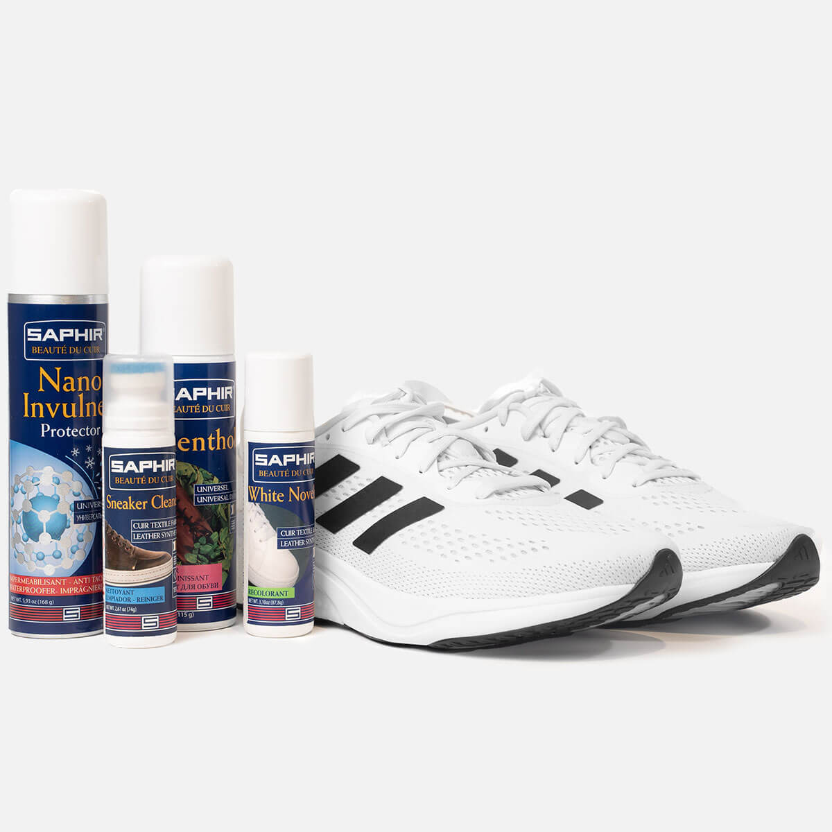 Si un blanchiment supplémentaire est nécessaire, nous vous recommandons d'utiliser le White Novelys Saphir. Appliquez simplement ce produit spécialisé sur les zones qui nécessitent un éclaircissement supplémentaire. Le White Novelys est conçu pour restaurer délicatement mais efficacement la couleur blanche d'origine de vos chaussures.
