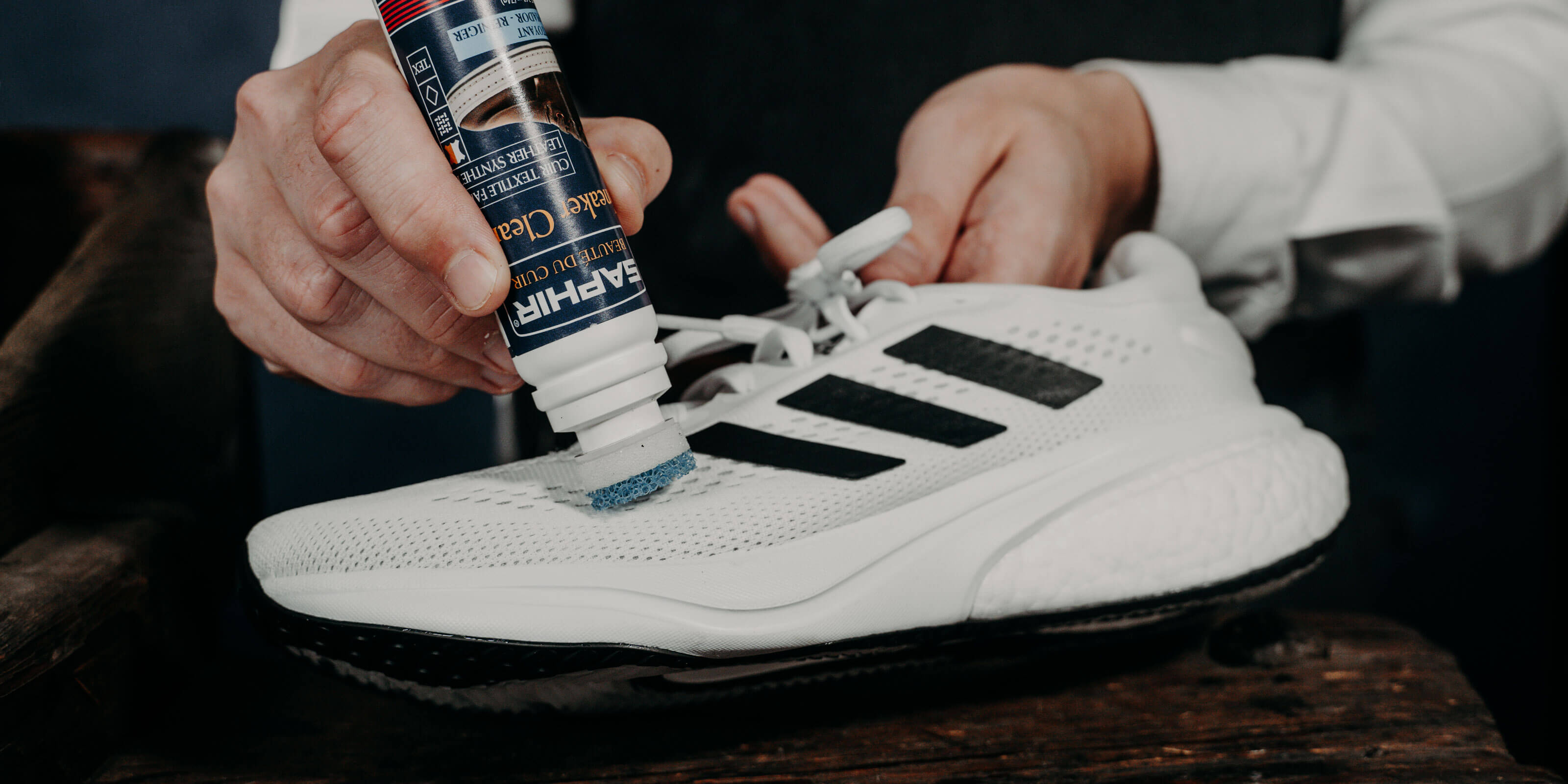 Notre guide étape par étape pour les sneakers vous apprendra à utiliser la gamme Saphir Beauté du Cuir et à garder vos chaussures propres et protégées.