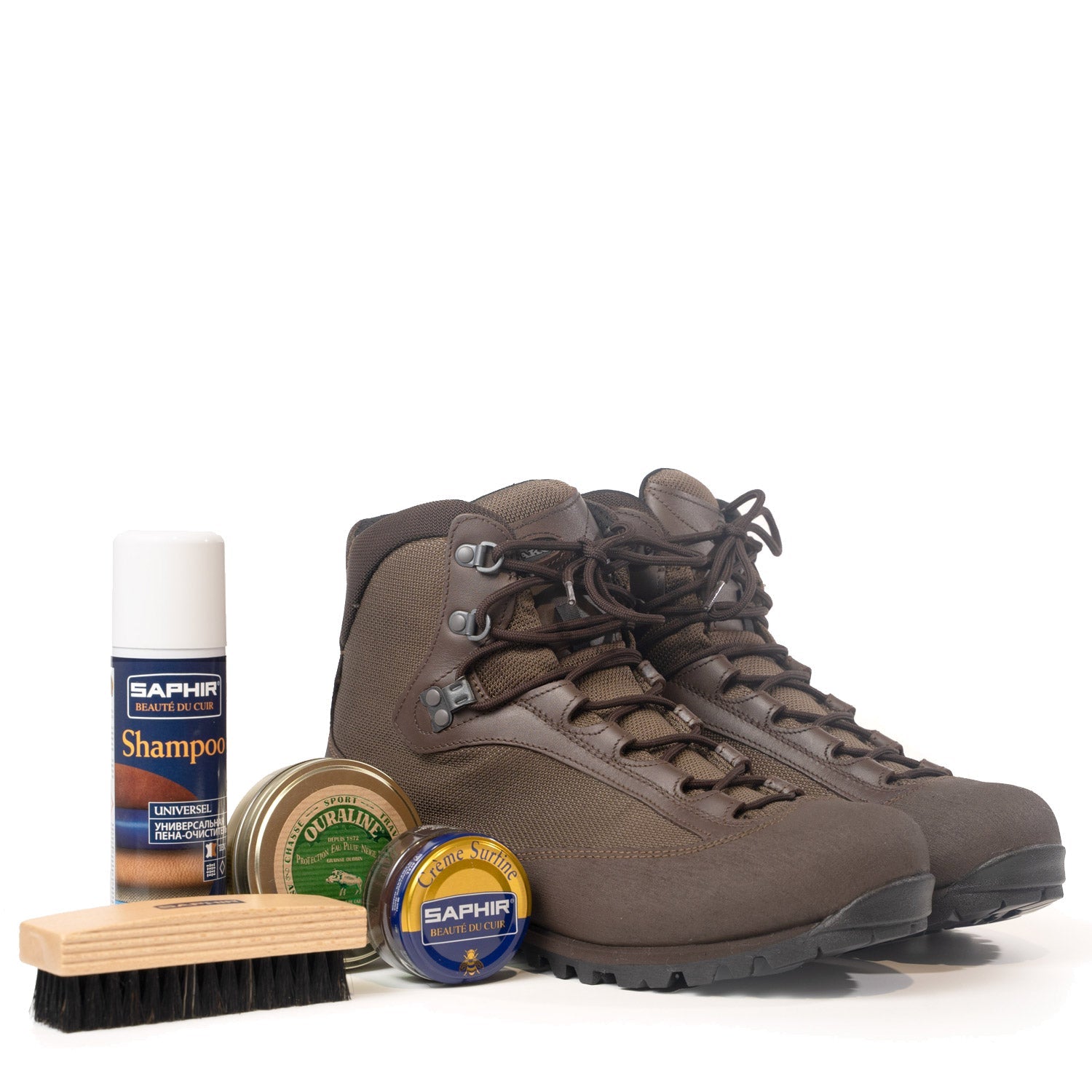 First remove debris and dirt from your suede shoes or boots using a Saphir brush. For detailed removal of dust and dirt we recommend using a Saphir multi suede brush to get into the harder to reach areas.